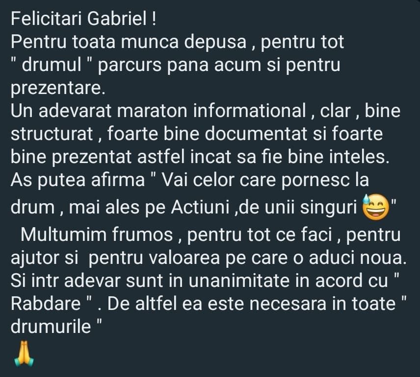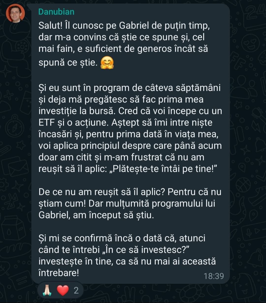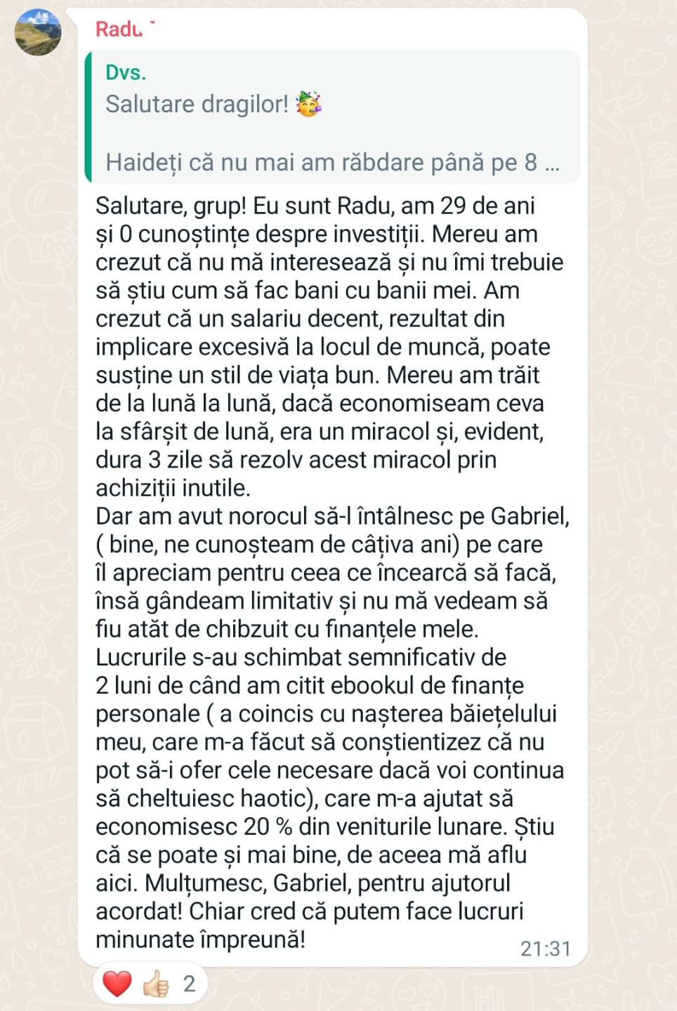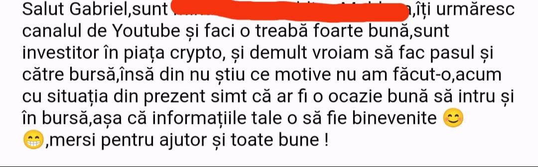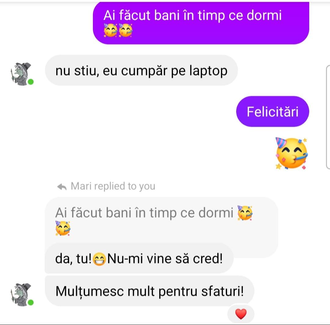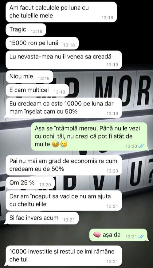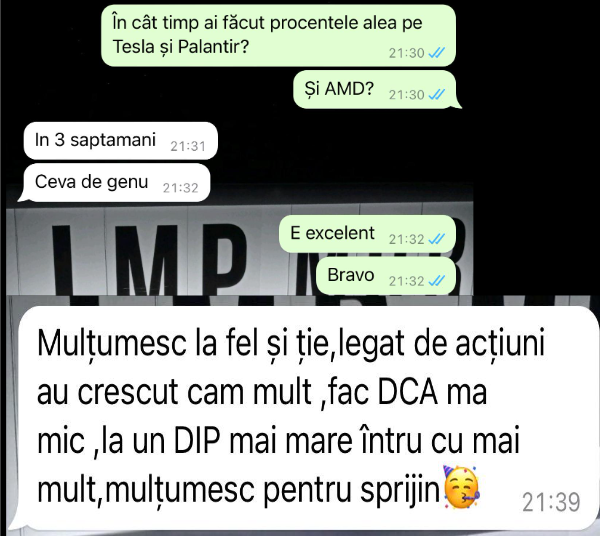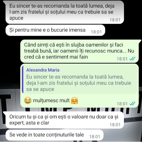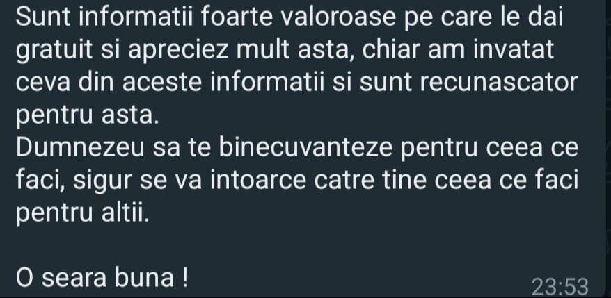 „Mulțumesc tare mult că am un sprijin în investiții și mă bazez pe tine să fie totul cum trebuie!”