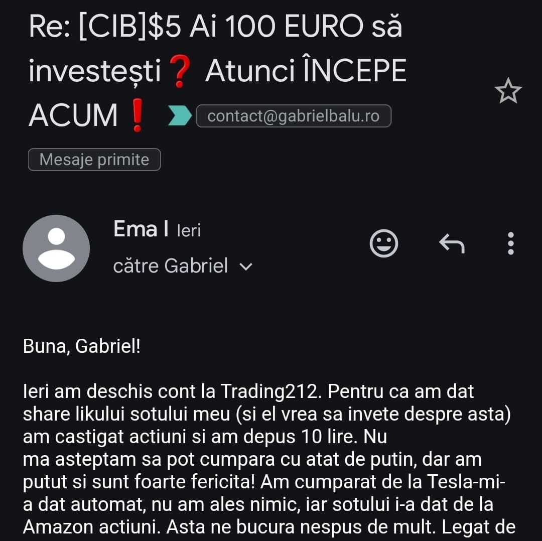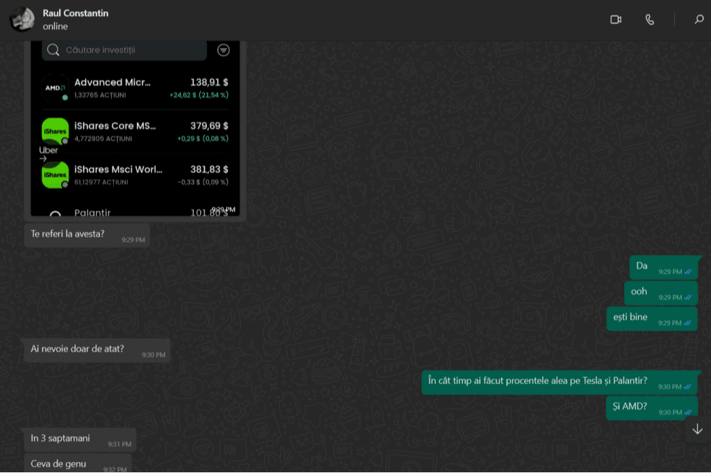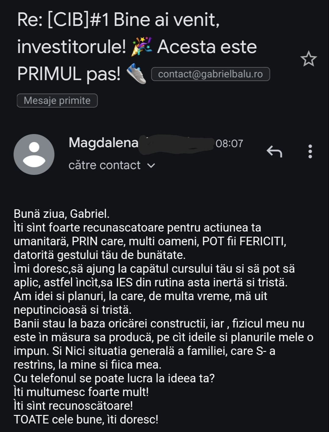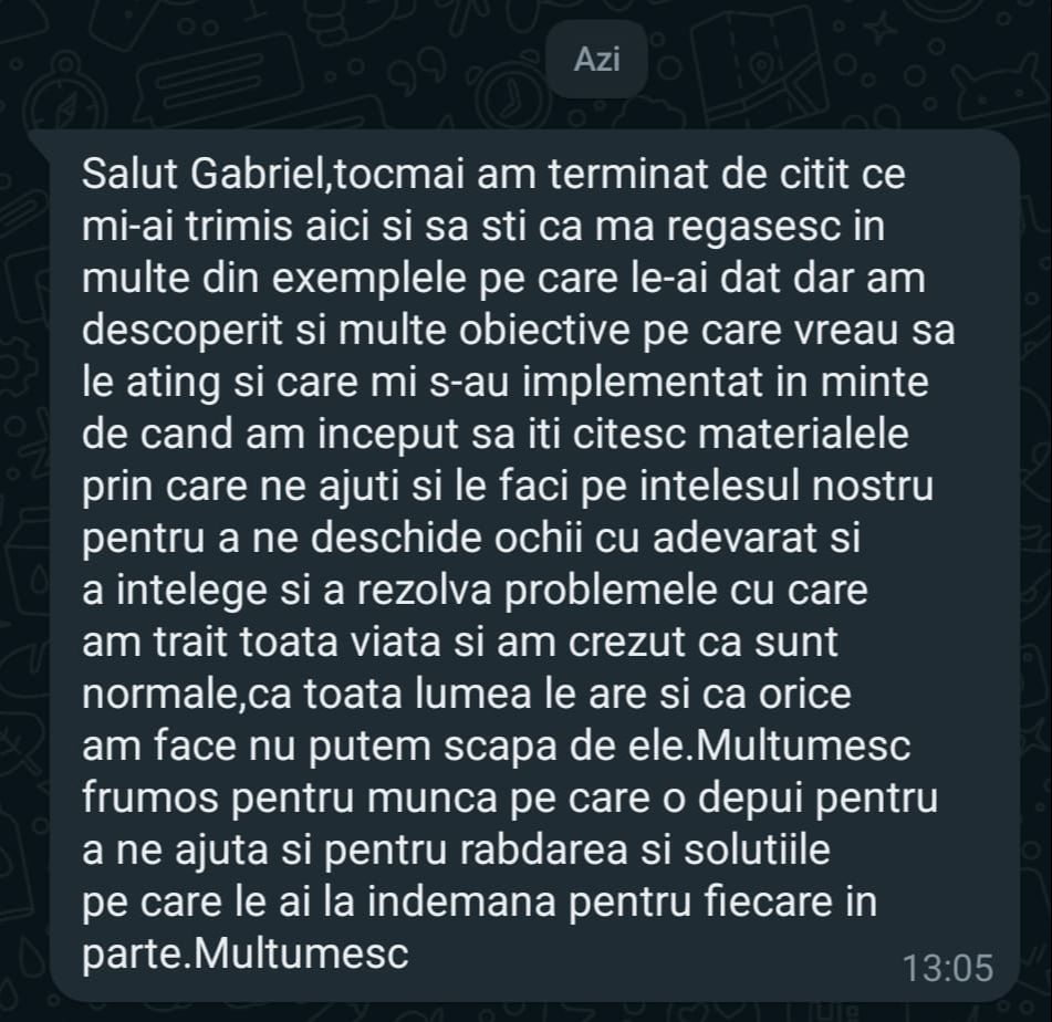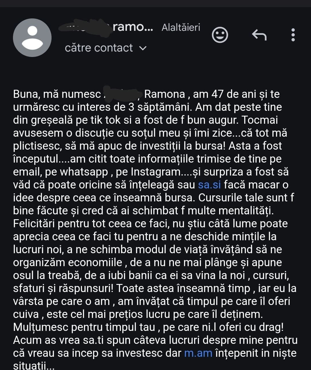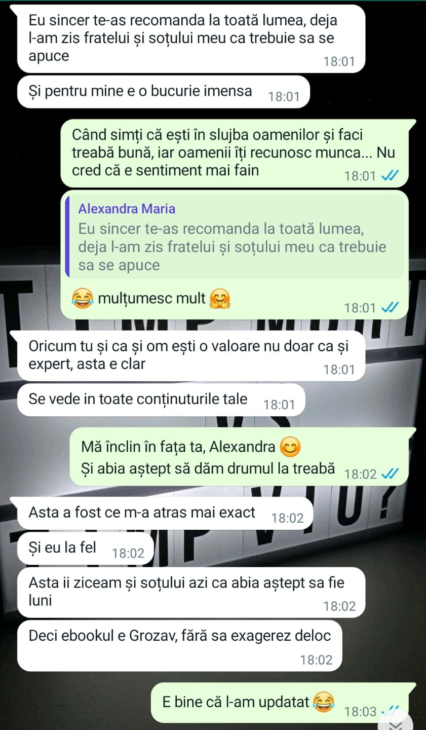 „Mulțumesc tare mult că am un sprijin în investiții și mă bazez pe tine să fie totul cum trebuie!”