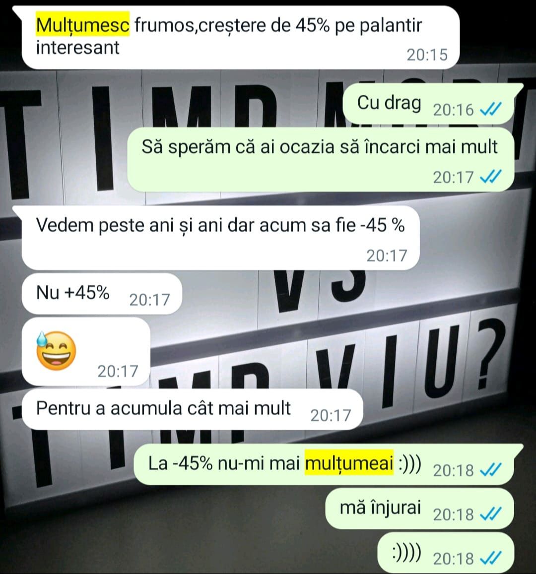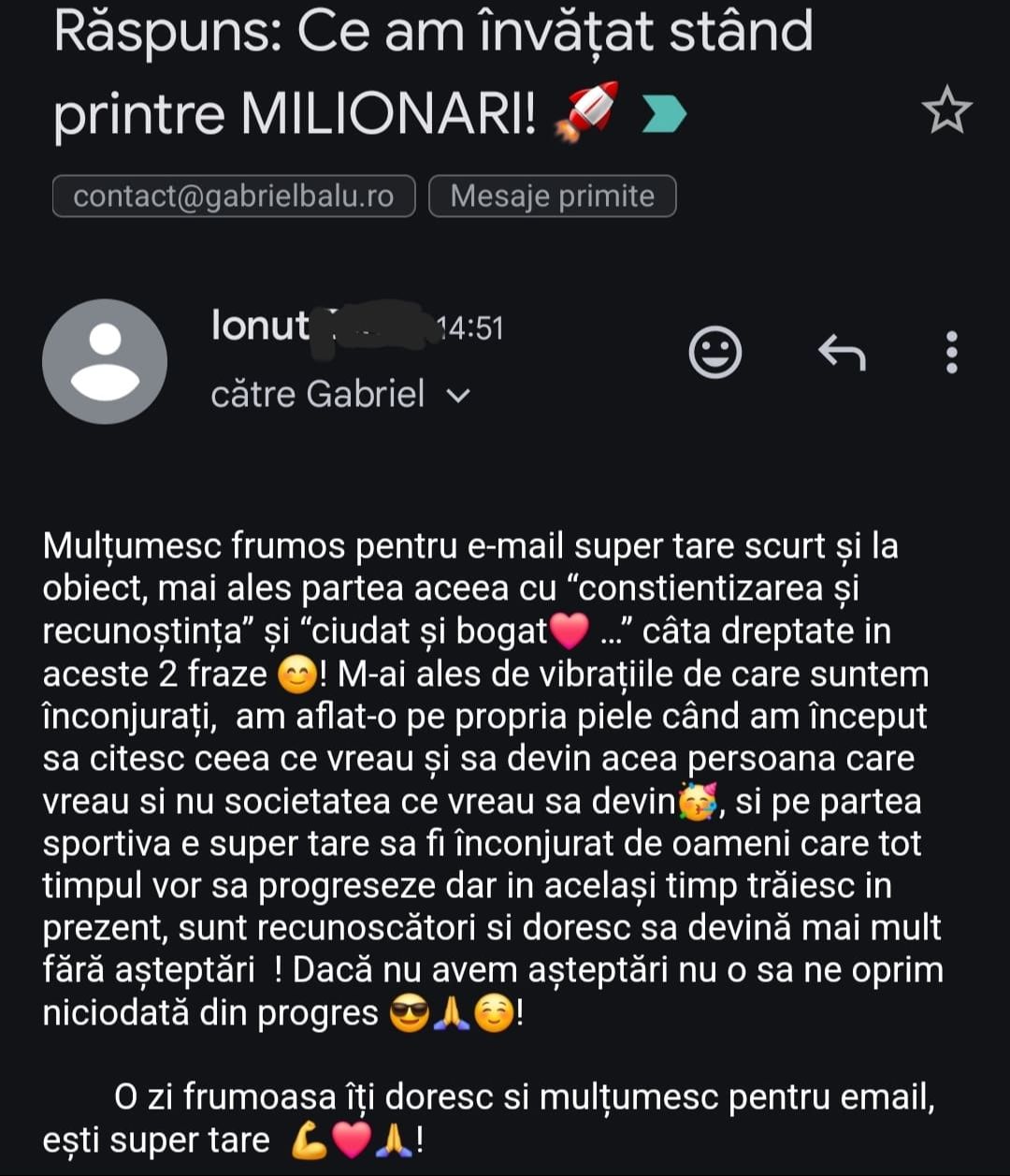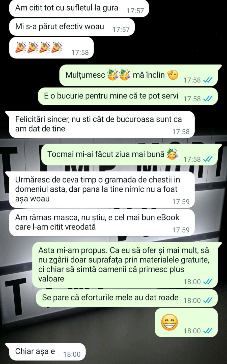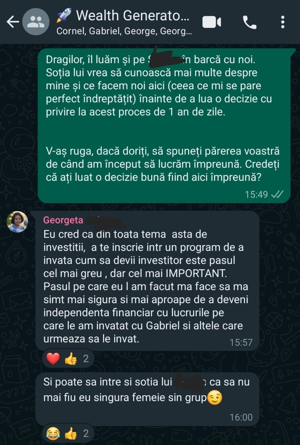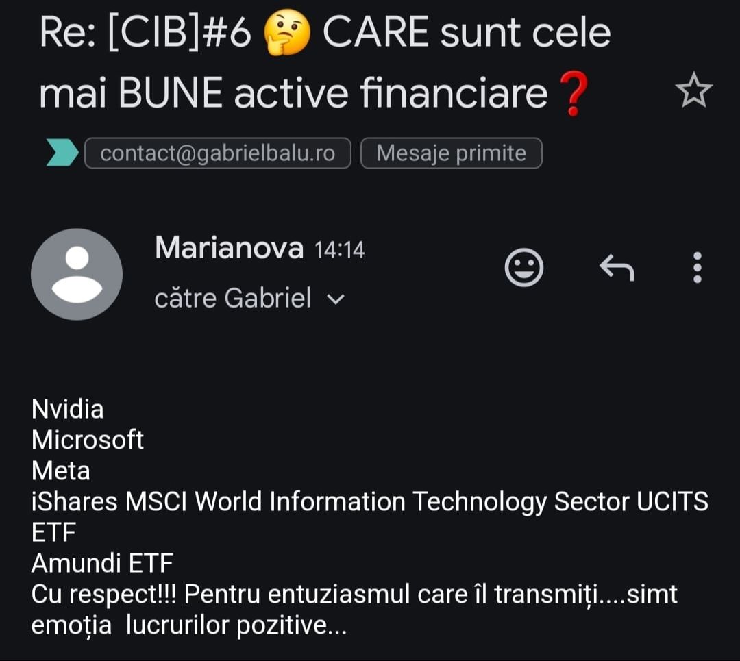 „Mulțumesc tare mult că am un sprijin în investiții și mă bazez pe tine să fie totul cum trebuie!”